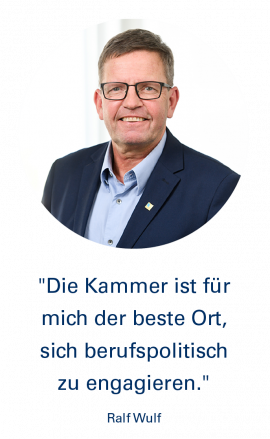 Der neunköpfige Vorstand ist ebenso ehrenamtlich für die Kammer tätig wie die vielen Mitglieder, die sich in Ausschüssen und Arbeitskreisen engagieren. 13 Ausschüsse und 24 Arbeitskreise gibt es aktuell. Die Ausschüsse und deren Mitglieder werden dabei von der Vertreterversammlung gewählt, während die Arbeitskreise anlassbezogen vom Vorstand eingesetzt werden.