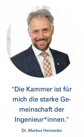 Mit zu den wichtigsten Errungenschaften der Kammer zählt, dass durch ihre Gründung und das Inkrafttreten des Baukammergesetzes die Berufsbezeichnung „Beratender Ingenieur“ geschützt ist und durch eine Reihe von Listen und Verzeichnissen geregelt wird, wer welche Ingenieurstätigkeiten durchführen darf. Das wiederum stellt eine unverzichtbare Voraussetzung zur Qualitätssicherung im Bauwesen dar. Wie schrieb schon 2015 Alt-Präsident Heinrich Schroeter in der Kammer-Chronik: „Wir Ingenieure bauen, gestalten und erhalten die Infrastruktur unserer Gesellschaft. Wir tragen eine hohe gesellschaftliche Verantwortung.“