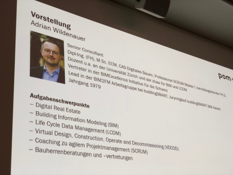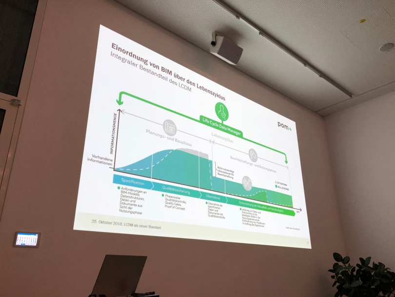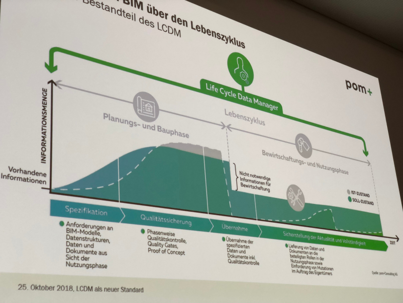 Beim Impulsvortrag von Adrian Wildenauer ging es um diesteigende Verfügbarkeit von Daten, die etwas über die Umgebung einer Immobilie aussagen, die von Sensoren befeuerte Zunahme an Informationen aus den Gebäuden selbst und schließlich digitale Plattformen, die diese Daten jederzeit und an jedem Ort verfügbar machen. Für all dies bedarf es einer Definition, welche Daten wann geliefert werden und wie diese geliefert werden müssen.