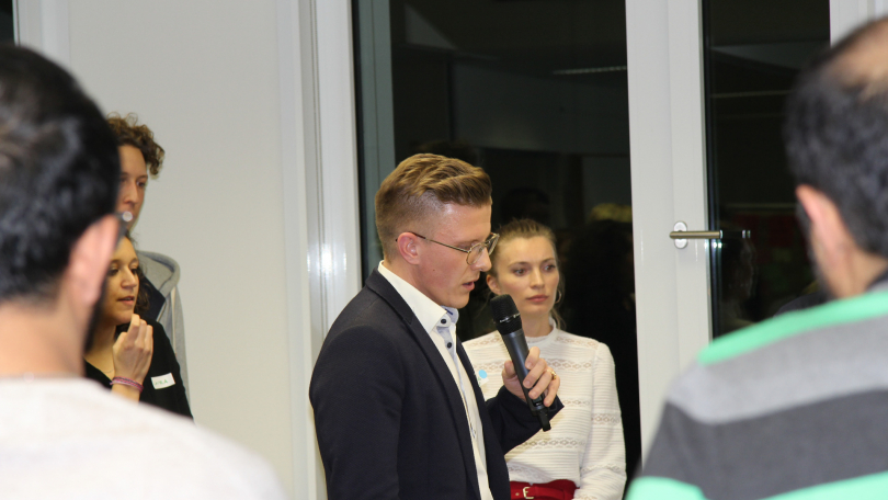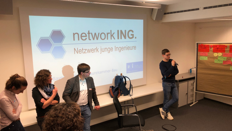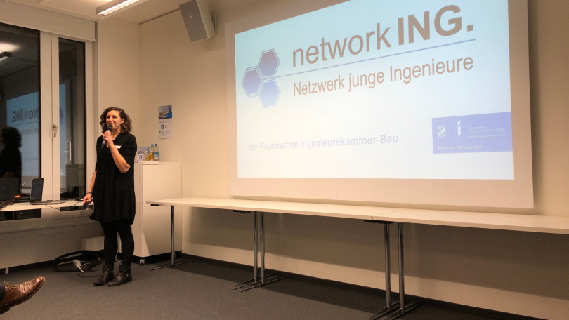 Nach der Begrüßung durch Laura Krauss und einigen einführenden Worten zum Netzwerk junge Ingeniure berichtete Dr. Markus Hennecke vom Vorstand der Bayerischen Ingenieurekammer-Bau darüber, wie er seine Zeit als Student und Berufseinsteiger erlebt hat. "Gute Netzwerke sind heute wichtiger denn je. Denn gerade die Arbeit der am Bau tätigen Ingenieure wird immer interdisziplinärer. Da sind Schnittstellenkompetenzen und gegenseitiger Austausch gefragt", sagte Hennecke und wies auf das Traineeprogramm der Kammer hin.