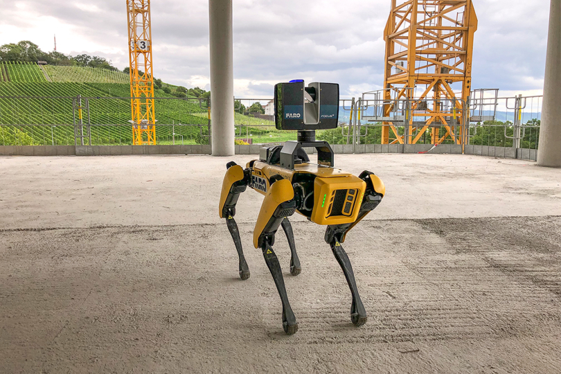 Bevor der RoboDog zur Serienreife gelangt und über die heimischen Baustellen wachen kann, muss er noch einiges lernen. Bisher erkennt der Hund beispielsweise sogenannte Scanschatten nicht. Stehen etwa Baumaterialien herum, werden diese ebenfalls erfasst und in die Punktwolke als Gebäudedaten übertragen. Was Spot einmal können soll, stellt sich Kroll so vor: „Der Roboter soll selbst entscheiden können, wann ein Scanschatten vorliegt und wann nicht. Er muss lernen, wichtige von unwichtigen Änderungen automatisiert zu erkennen.“ Wie das gelingen kann, untersuchen die Laserscan-Spezialisten von Faro in einem gemeinsamen Forschungsprojekt mit den Baumanagement- und Digitalisierungsexperten von Drees & Sommer.
