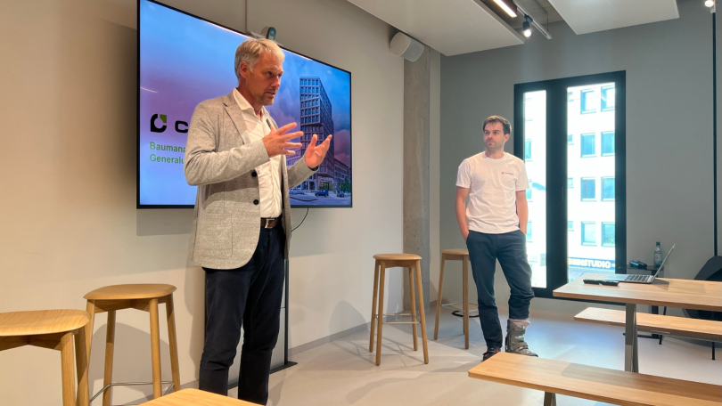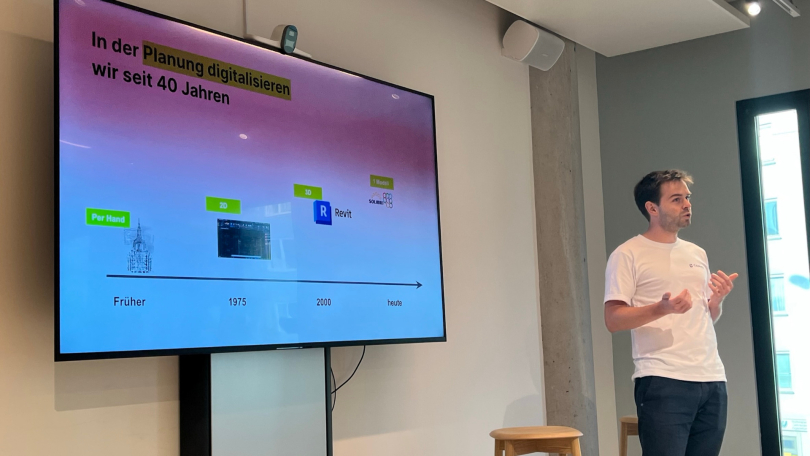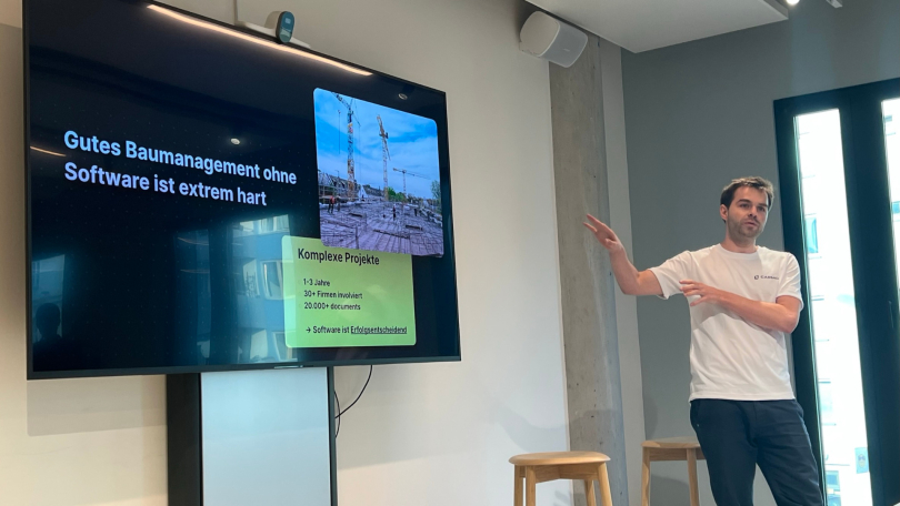 Florian Biller, einer der Gründer und Geschäftsführer von Capmo, zeigte in seinem Impulsvortrag, wie digitales Baumanagement zur Optimierung der Bauprozesse, dem Einsparen von CO2 und dem Schutz der Umwelt beitragen kann.
