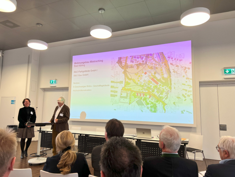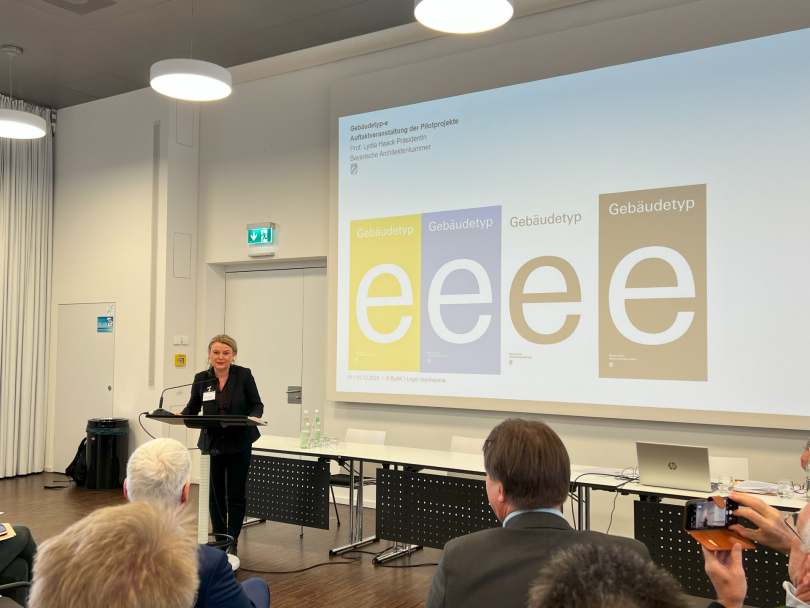 Nach einem Grußwort von Dr. Thomas Gruber, Amtschef im Bayerischen Staatsministerium für Wohnen, Bau und Verkehr, und Impulsvorträgen von Prof. Lydia Haack, Präsidentin der Bayerischen Architektenkammer und Prof. Dr. Norbert Gebbeken, Präsident der Bayerischen Ingenieurekammer-Bau, wurden die Projekte vorgestellt. Insgesamt haben sich 19 Bauherren aus allen Ecken Bayerns mit Pilotprojekten gemeldet, darunter 15 Wohnbauprojekte, drei kommunale Schulbauprojekte und ein Verwaltungsgebäude.