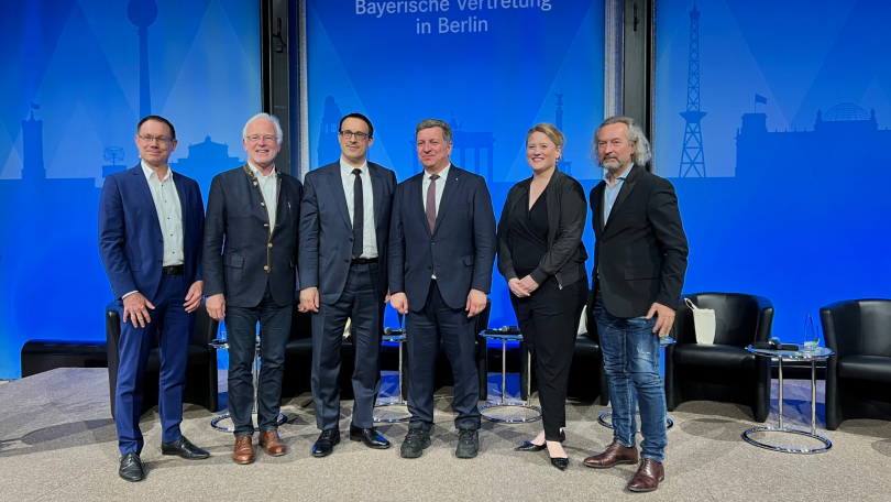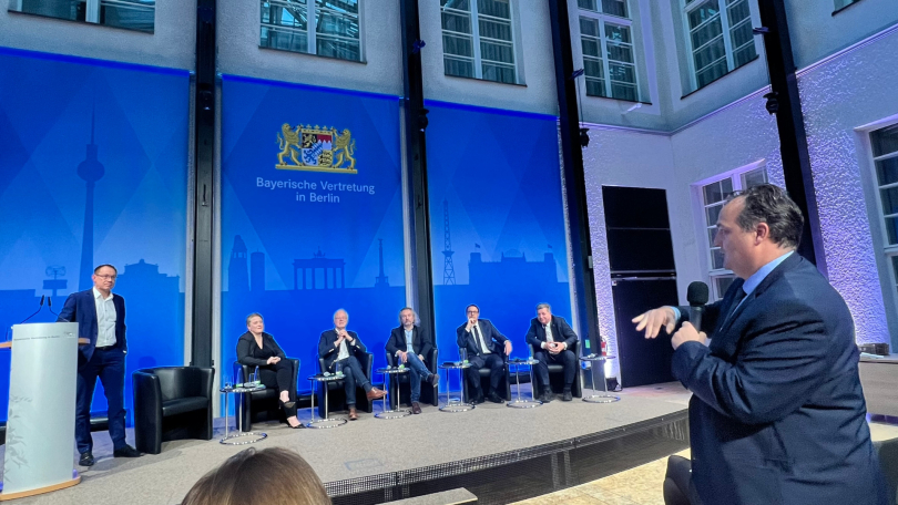 „Nachhaltiges Bauen und Kostensenkungen – Ein Spannungsverhältnis?“ Unter diesem Motto hat Bayerns Bauminister Christian Bernreiter am 11. April 2024 Experten aus Politik, Wissenschaft und Praxis zu einem Parlamentarischen Abend in die Bayerische Vertretung in Berlin geladen. „Wir haben uns ambitionierte Klimaziele gegeben, die uns auch im Bauwesen vor Herausforderungen stellen“, so Minister Bernreiter. Die Bayerische Ingenieurekammer-Bau war mit Präsident Prof. Dr. Norbert Gebbeken auf dem Podium vertreten.