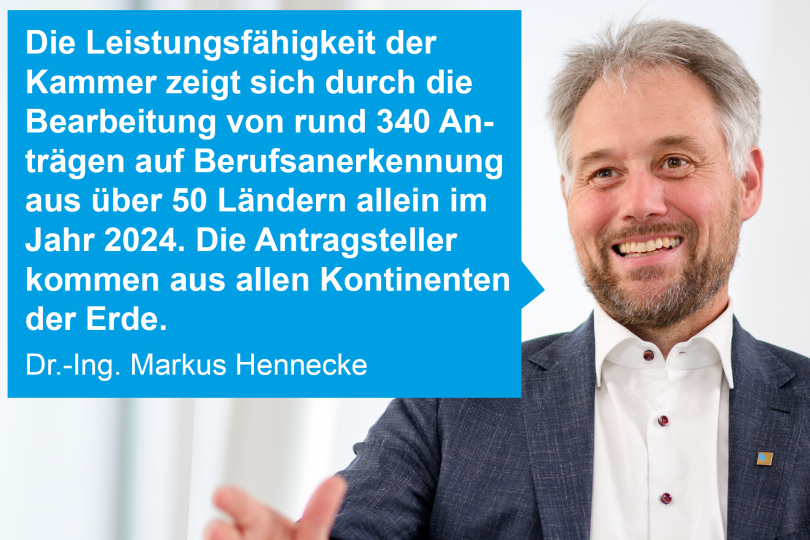 Die Bayerische Ingenieurekammer-Bau spielt eine zentrale Rolle bei der Anerkennung ausländischer Ingenieursabschlüsse und unterstützt die Integration ausländischer Fachkräfte in den deutschen Berufsmarkt. Dies bringt vielfältige Vorteile mit sich, insbesondere durch kulturellen Austausch und internationale Vernetzung, die Innovationen und Wettbewerbsfähigkeit fördern, so unser Vorstandsmitglied Dr.-Ing. Markus Hennecke in der aktuellen Kammer-Kolumne in der Staatszeitung.
