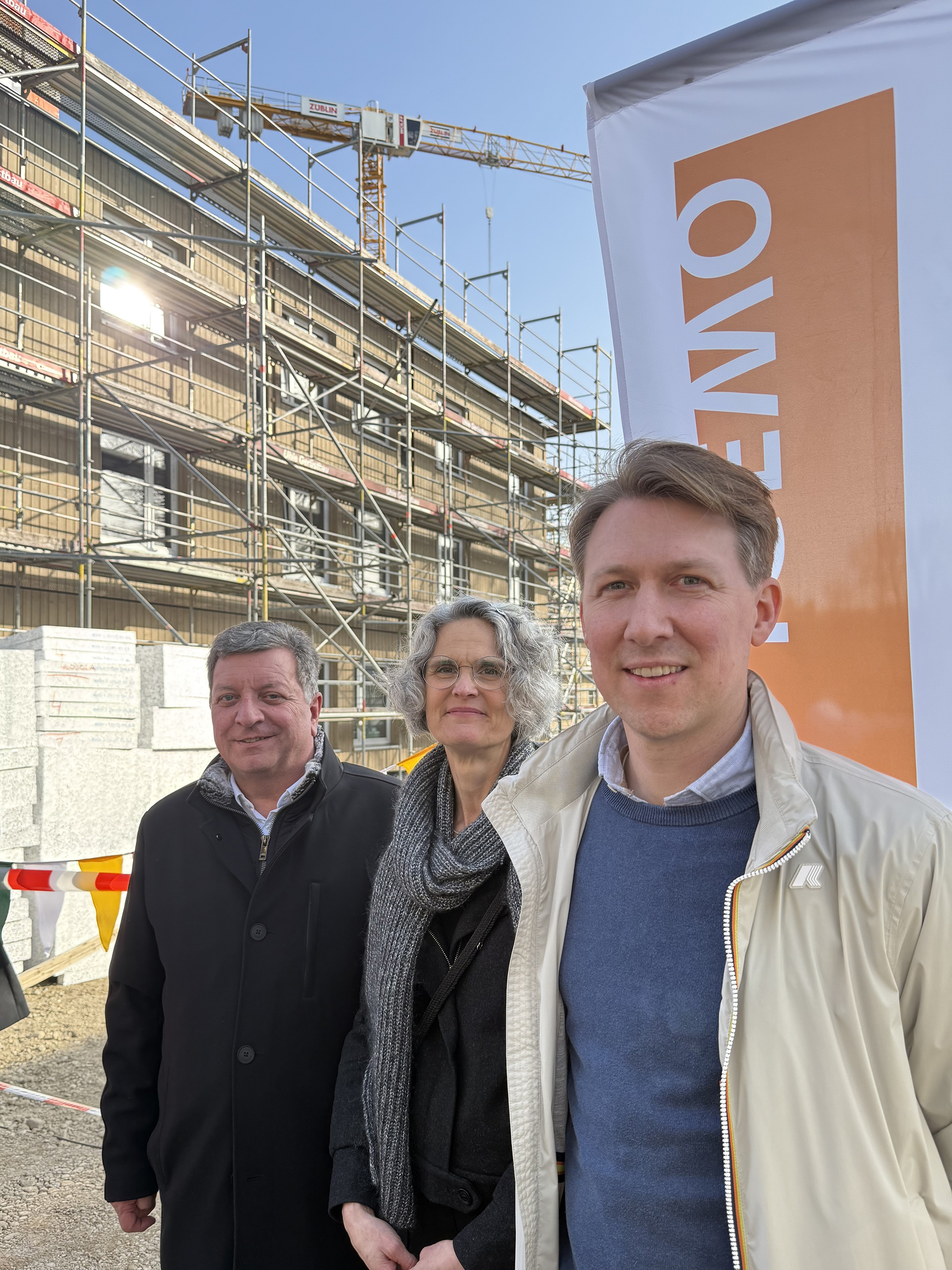 Einfach Bauen! – Das macht die sozialorientierte IGEWO derzeit mit einem Pilotprojekt zum Gebäudetyp-e in Augsburg-Haunstetten und spart dabei Zeit und Geld. Profitieren werden davon am Ende die Bewohnerinnen und Bewohner der 54 bezahlbaren Mietwohnungen. Nach nur knapp einem halben Jahr Bauzeit konnte sich Bauminister Christian Bernreiter am 5. März 2026 selbst ein Bild vom Vorzeigebau machen und die am Projekt beteiligten Handwerker und Planer sowie Vertreter aus Politik und Gesellschaft zum Richtfest begrüßen.