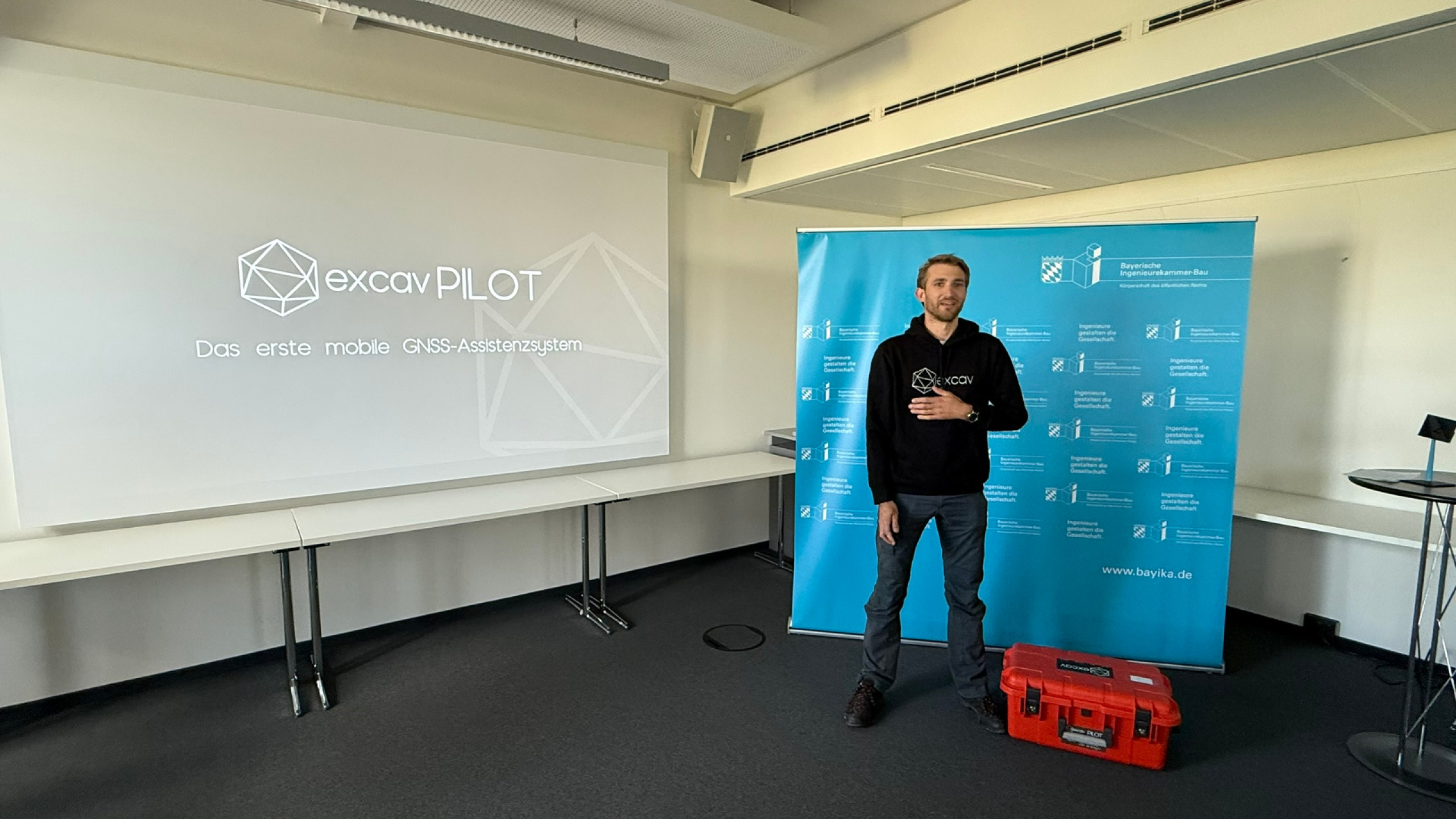 Das Erlanger Start-Up Excav UG hat mit dem Excav PILOT ein Assistenzsystem für Bagger entwickelt, das durch seine einfache, intuitive Bedienung besticht und maschinenunabhängig überall einsetzbar ist. Der Excav PILOT, welcher per Magnet leicht zu befestigen ist, teilt dem Baggerfahrer sofort mit, ob er korrekt gegraben hat. So werden Fehlgrabungen vermieden und Zeit beim Aushub eingespart.