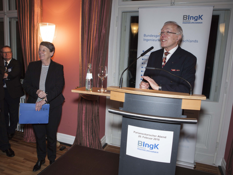 Am 20.02.2018 trafen sich rund 150 geladene Gäste aus Politik, Wirtschaft, Verwaltung und Ingenieurkammern zum Parlamentarischen Abend der Bundesingenieurkammer in Berlin. Auch die Bundesbauministerin Babara Hendricks war der Einladung gefolgt und betonte: „German Engineering ist für die Zukunfts- und Wettbewerbsfähigkeit Deutschlands unverzichtbar"