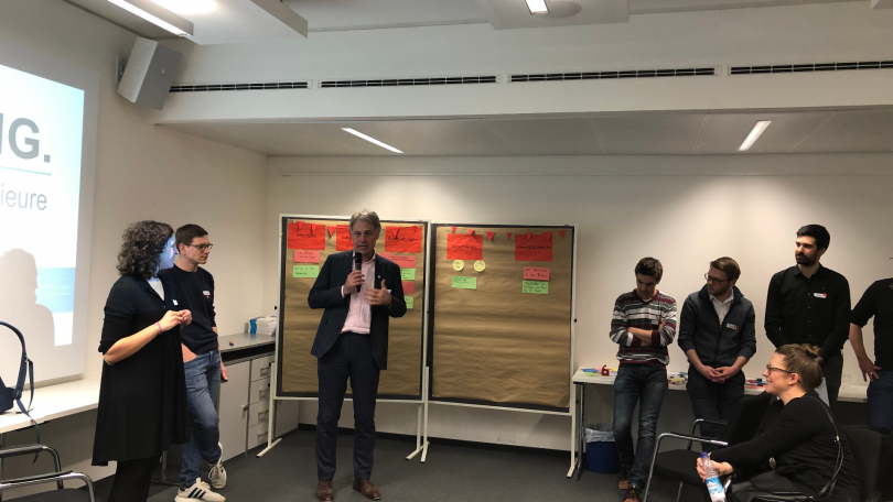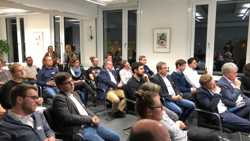 Nach der Begrüßung durch Laura Krauss und einigen einführenden Worten zum Netzwerk junge Ingeniure berichtete Dr. Markus Hennecke vom Vorstand der Bayerischen Ingenieurekammer-Bau darüber, wie er seine Zeit als Student und Berufseinsteiger erlebt hat. "Gute Netzwerke sind heute wichtiger denn je. Denn gerade die Arbeit der am Bau tätigen Ingenieure wird immer interdisziplinärer. Da sind Schnittstellenkompetenzen und gegenseitiger Austausch gefragt", sagte Hennecke und wies auf das Traineeprogramm der Kammer hin.
