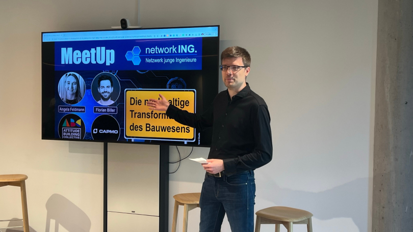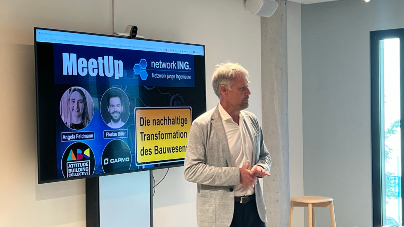 Beim MeetUp unseres Netzwerkes junge Ingenieure am 23. August in München ging es um eine der brennendsten Fragen der Zukunft - die nachhaltige Transformation des Bauwesens. Angela Feldmann stellte das Attitude Building Collective ABC vor. Die Initiative hat das Ziel, alle Bauschaffenden für eine sinnhafte und ganzheitlich nachhaltige Transformation im Bauwesen zu mobilisieren. Florian Biller von Capmo zeigte, wie digitales Baumanagement zur Optimierung der Bauprozesse, dem Einsparen von CO2 und dem Schutz der Umwelt beitragen kann.