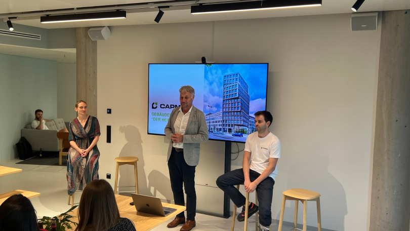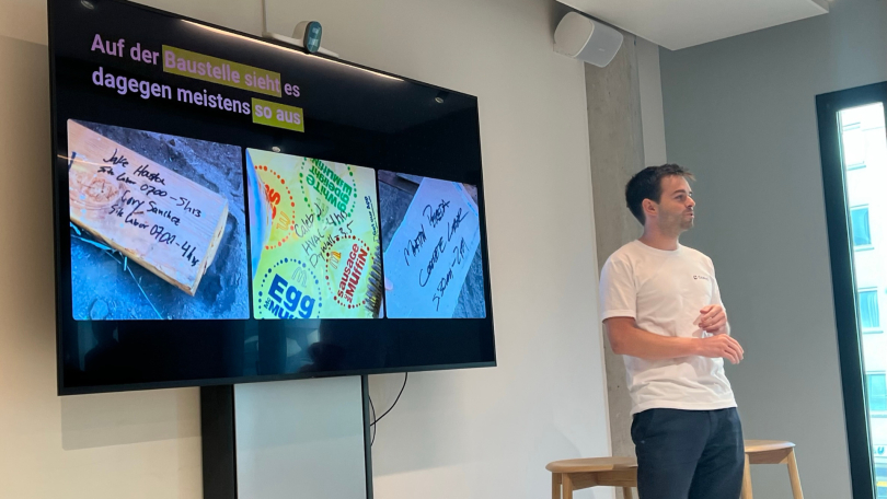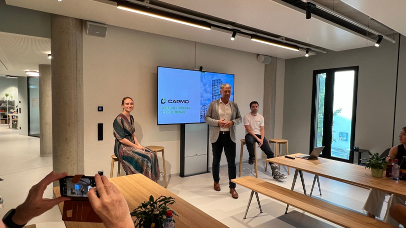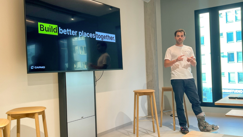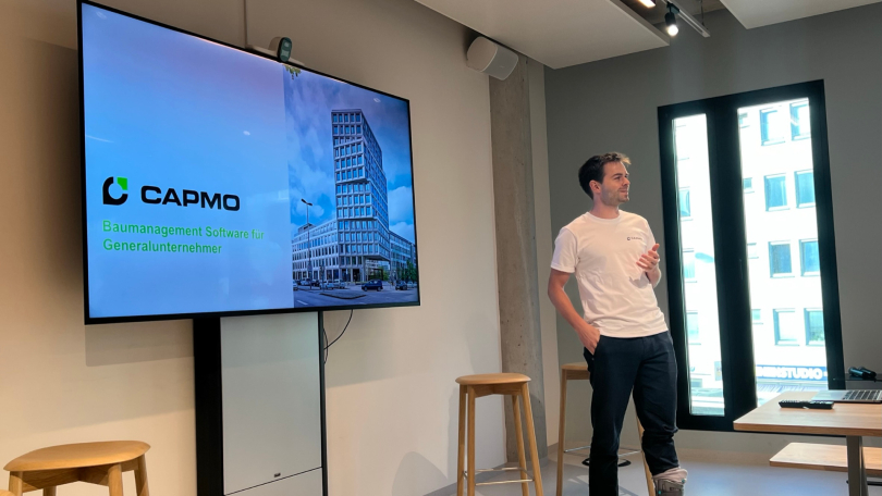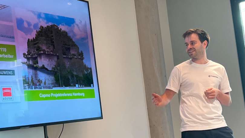 Florian Biller, einer der Gründer und Geschäftsführer von Capmo, zeigte in seinem Impulsvortrag, wie digitales Baumanagement zur Optimierung der Bauprozesse, dem Einsparen von CO2 und dem Schutz der Umwelt beitragen kann.