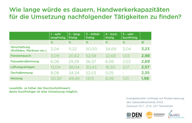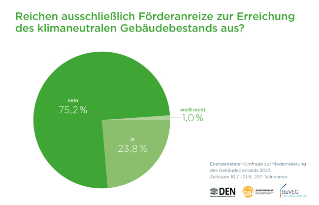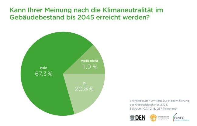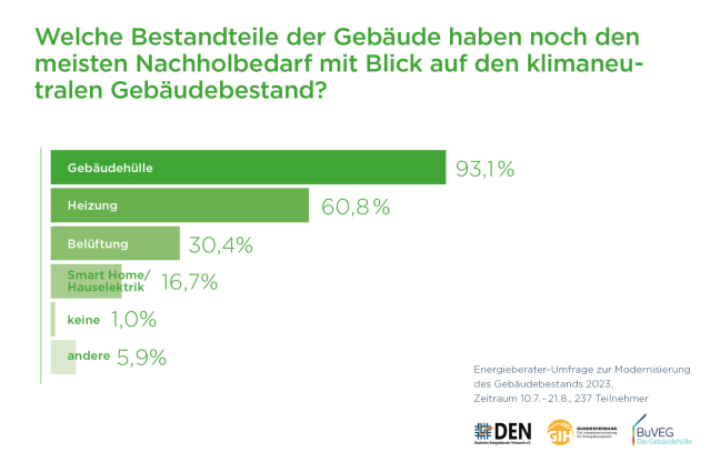 Die Umfrage wurde unter den Mitgliedern des Deutschen Energieberater Netzwerks DEN und des GIH Bundesverbands im Auftrag des Bundesverbands energieeffiziente Gebäudehülle e.V. (BUVEG) durchgeführt.
