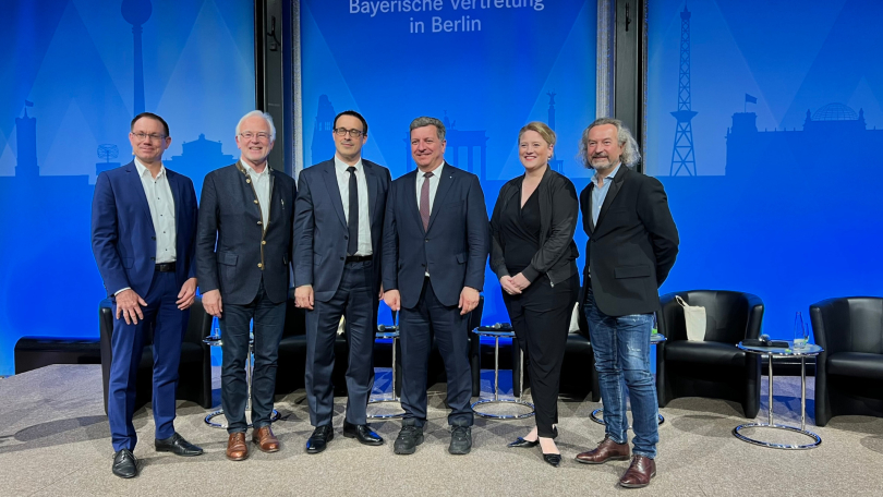 „Nachhaltiges Bauen und Kostensenkungen – Ein Spannungsverhältnis?“ Unter diesem Motto hat Bayerns Bauminister Christian Bernreiter am 11. April 2024 Experten aus Politik, Wissenschaft und Praxis zu einem Parlamentarischen Abend in die Bayerische Vertretung in Berlin geladen. „Wir haben uns ambitionierte Klimaziele gegeben, die uns auch im Bauwesen vor Herausforderungen stellen“, so Minister Bernreiter. Die Bayerische Ingenieurekammer-Bau war mit Präsident Prof. Dr. Norbert Gebbeken auf dem Podium vertreten.