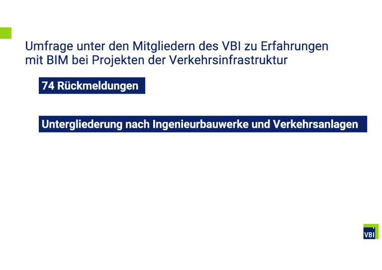 Am 10. Juli 2024 lud die Autobahn GmbH des Bundes zum Dialogforum „BIM - Autobahn GmbH und Bauwirtschaft“ ein. Ziel der Veranstaltung war es, den aktuellen Stand der Umsetzung von Building Information Modeling (BIM) in der Bauwirtschaft zu diskutieren. Um fundierte Einblicke in die Fortschritte und Herausforderungen der VBI-Unternehmen zu erhalten, führte der VBI im Vorfeld eine Umfrage durch.