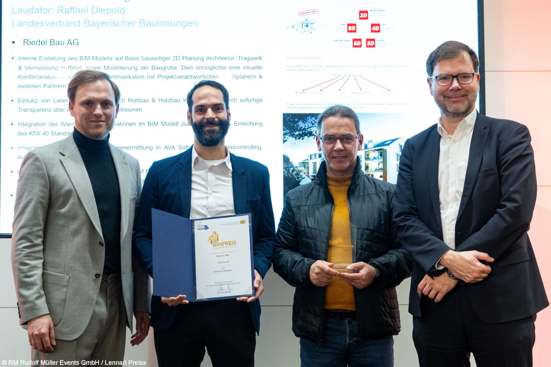 Die Riedel Bau AG wurde für das Projekt „Wohnen am Hennigbach“ ausgezeichnet: Das Projekt zeigt, wie der Einsatz von BIM (Building Information Modeling) als Treiber für Transparenz, Nachhaltigkeit und Effizienz bereits in frühen Projektphasen Mehrwert schafft. Durch konsequente modellbasierte Arbeitsweisen von der Baugrubenplanung über eine nachhaltige Umplanung bis zur Umsetzung konnten Risiken minimiert, Entscheidungen beschleunigt und die Zusammenarbeit verbessert werden.