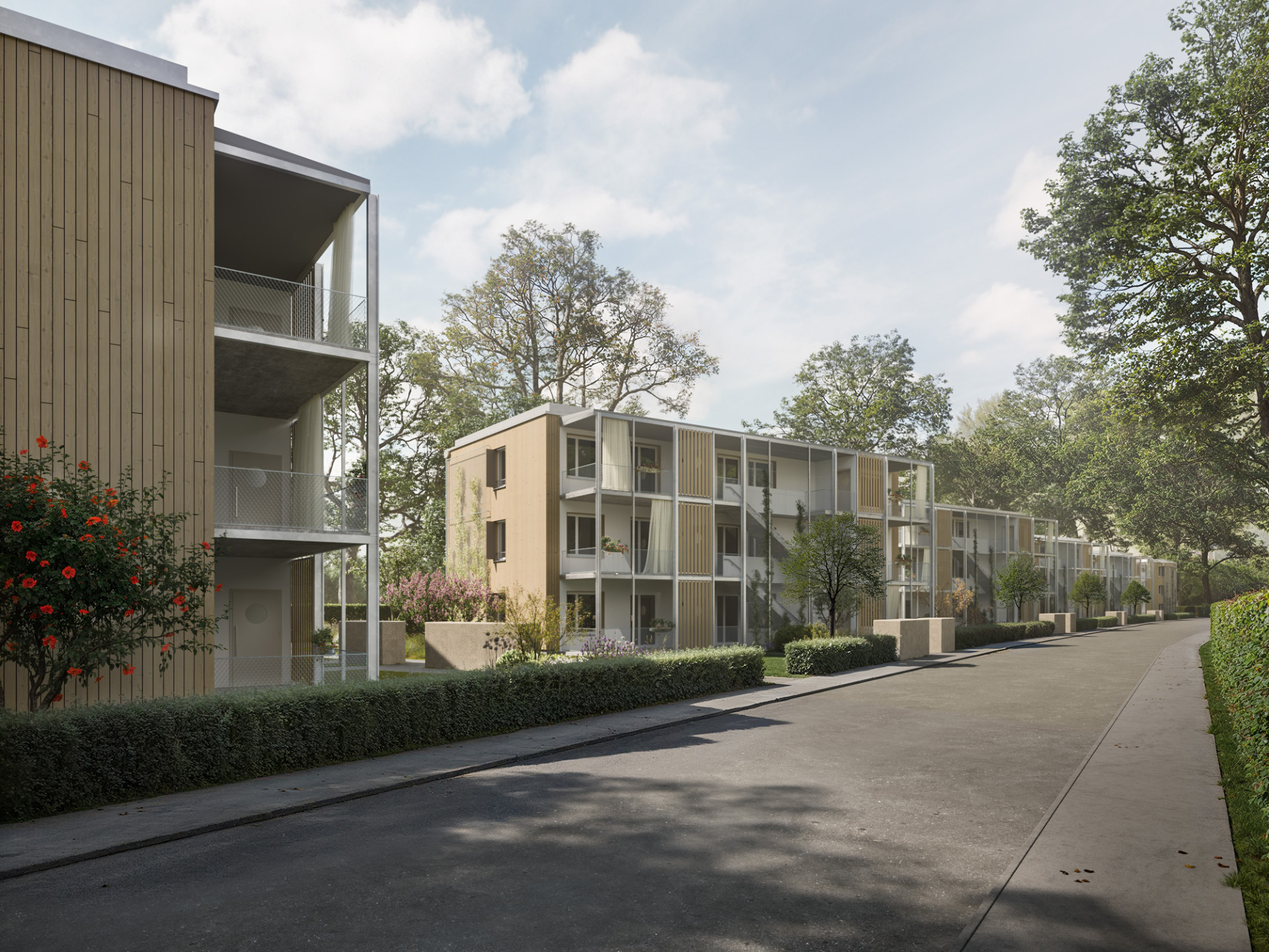 Visualisierung der Wohnanlage in Augsburg Haunstetten 02. Quelle: hey! Architektur bumeder wehmann architekten partgmbb)