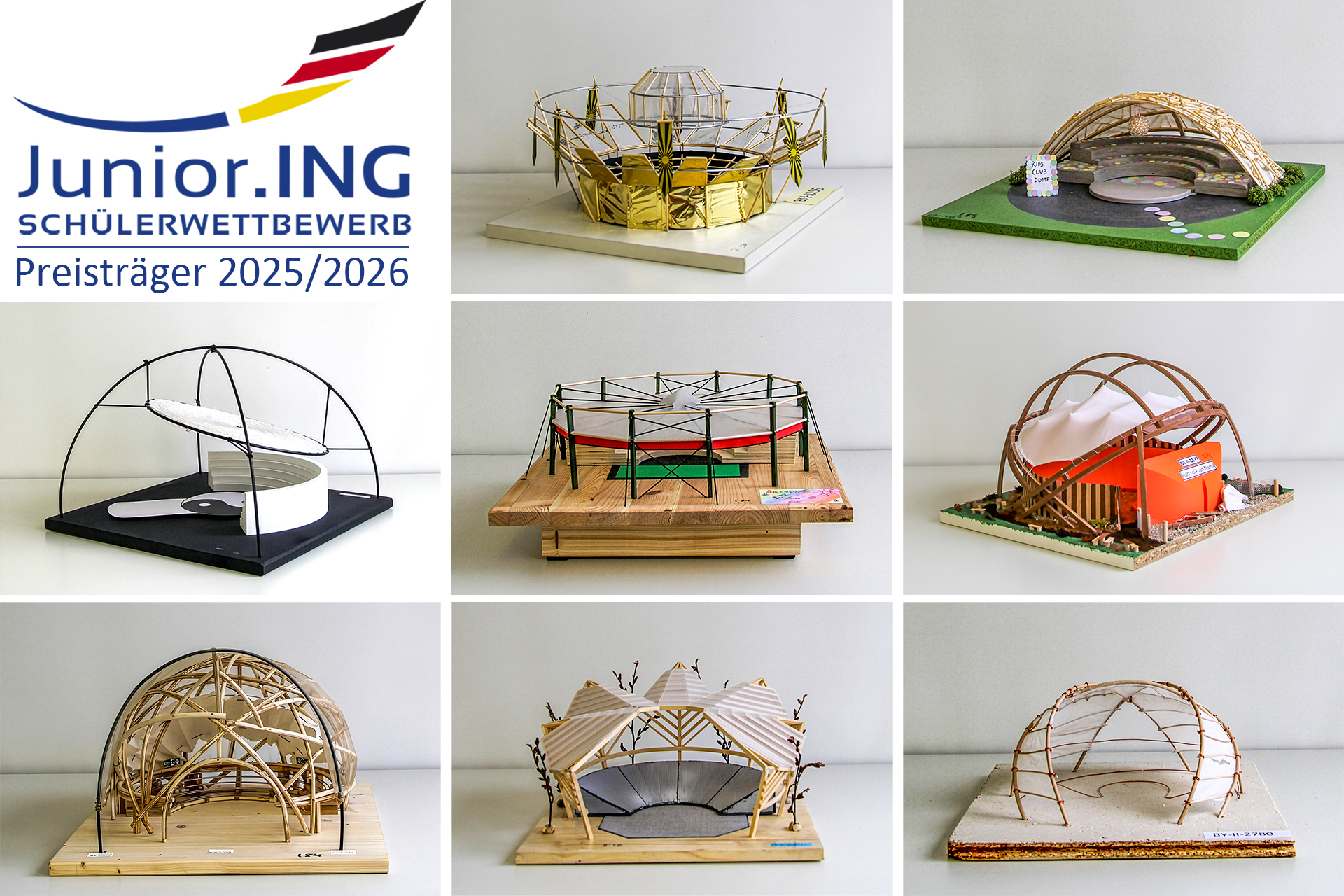 Die Grundschülerinnen Emma und Elina nahmen erstmals am Wettbewerb Junior.ING teil und errangen mit ihrem an ein Zirkuszelt angelehnten Modell auf Anhieb den ersten Platz. Ihr Modell überzeugt durch eine einheitliche, durchdachte Gestaltung und das sehr klare, strukturierte Speichenradtragwerk. Ein Ingenieurverstand ist klar erkennbar.