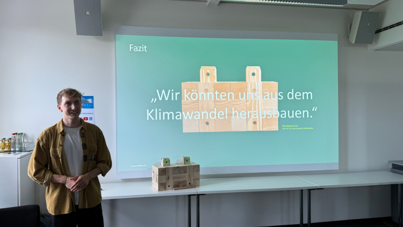 Wird das Gebäude später einmal um- oder rückgebaut, können die Bausteine, die BRIQS, sortenrein getrennt und somit vollumfänglich recycelt werden. Ein weiteres Plus: Die BRIQS können dezentral hergestellt werden – sie werden vor Ort in nahegelegenen Sägewerken gefertigt.