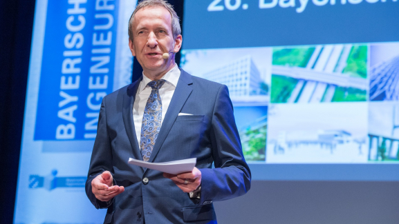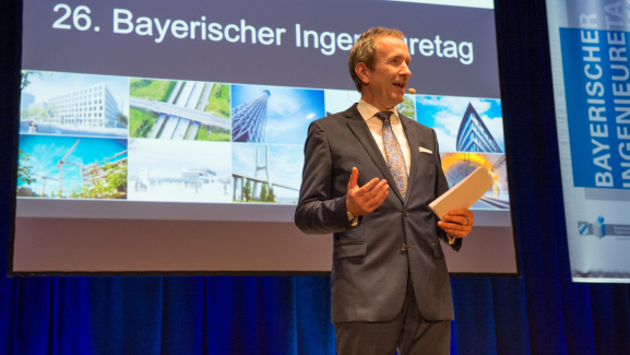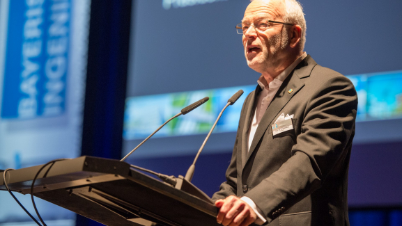 "Die am Bau tätigen Ingenieure sind maßgebliche Gestalter der Gesellschaft, mehr als uns gemeinhin bewusst ist. Und dabei nehmen sie eine besondere Rolle ein, wenn es um die Sicherheit der gebauten Umwelt geht", sagte Prof. Dr. Norbert Gebbeken, der Präsident der Bayerischen Ingenieurekammer-Bau, in seiner Begrüßungsrede. Die großen gesellschaftlichen Herausforderungen wie Klimawandel, demografischer Wandel, Urbanisierung, Digitalisierung und neue Mobilität müssten in Einklang gebracht werden mit den gesellschaftlichen Forderungen z.B. nach Sicherheit und Gesundheit. Mit diesen Aufgaben wende sich die Gesellschaft an Architekten und am Bau tätige Ingenieure, so Gebbeken weiter.