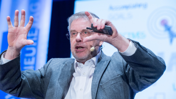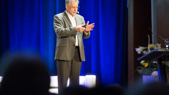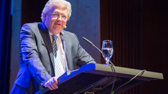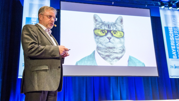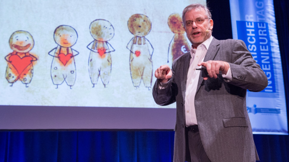 Der zuspitzende Vortrag „Der Ingenieur als Gestalter der Gesellschaft?“ von Prof. Dr. Gunter Dueck, fand beim Publikum großen Anklang. „Ich habe mir mal erlaubt ein Fragezeichen hinter diese Aussage zu setzen“, begann er seine Rede mit einem Augenzwinkern.