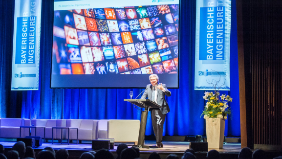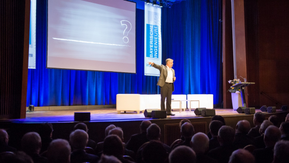 Der inhaltliche Schwerpunkt des 26. Bayerischen Ingenieuretages am 26. Januar 2018 in der Alten Kongresshalle München lag auf der Verantwortung der Ingenieure, die Gesellschaft verantwortungsvoll und lebenswert mitzugestalten. Mit Umweltministerin Ulrike Scharf, Prof. Dr. Gunter Dueck und Prof. Sigmund Gottlieb konnte die Bayerische Ingenieurekammer-Bau wieder hochkarätige Referenten begrüßen.