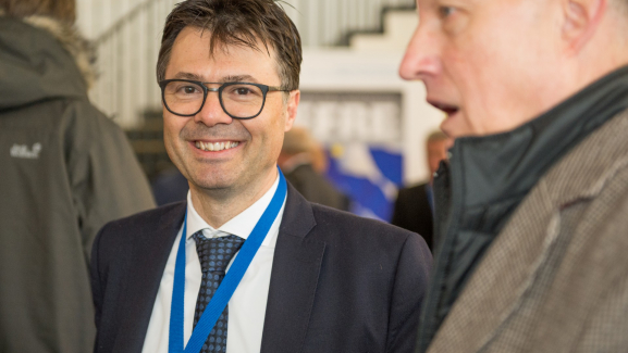 In seinem Vortrag sprach Dueck darüber, wie Ingenieure die ökonomische und baukulturelle Entwicklung unserer heutigen Gesellschaft gestalten. Anhand der zunehmenden Digitalisierung der Arbeits- und Kommunikationsprozesse zeigte Dueck, wie wichtig es für ein ganzheitliches Planen und Bauen ist, dass Ingenieure sich auch gesellschaftspolitisch zu Wort melden - und warum bei Projektentscheidungen der technische Sachverstand der Ingenieure in der politischen Argumentation berücksichtigt werden muss.