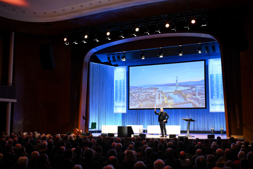 Der 32. Bayerische Ingenieuretag thematisierte die großen Baustellen unserer Zeit auf der Suche nach Lösungen. Was muss sich (wirtschafts-)politisch ändern, um den Wandel erfolgreich zu gestalten? Welche Rahmenbedingungen brauchen wir und welche Rolle spielt das Wachstum dabei? Wie sieht die Mobilität der Zukunft aus? Welche Chancen und Herausforderungen stellen sich bei der Transformation zum nachhaltigen Unternehmen? Diesen Fragen widmete sich der 32. Bayerische Ingenieuretag am 26. Januar 2024 in der Alten Kongresshalle in München.