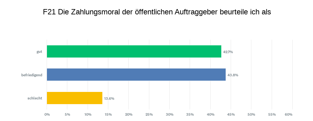 Die Zahlungsmoral der öffentlichen Auftraggeber beurteilen 42,7 Prozent als gut (Vorjahr 43,8 Prozent).