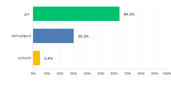 Die Zahlungsmoral der öffentlichen Auftraggeber beurteilen 44,4 Prozent (Vorjahr 47,9 Prozent) als gut, 44,6 Prozent (Vorjahr 41,6 Prozent) als befriedigend und 10,9 Prozent (Vorjahr 10,5 Prozent) als schlecht.