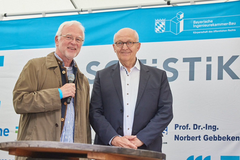 Dr.-Ing. Heinrich Bökamp, der Präsident der Bundesingenieurkammer, war extra nach München gekommen und überbrachte Grüße und Glückwünsche aus Berlin. In seiner Rede unterstrich Bökamp den wichtigen Beitrag der Ingenieure zu den großen Herausforderungen der Zeit wie dem Klimawandel und ihre gesellschaftliche Verantwortung für ein klimagerechtes Planen und Bauen. Bökamp plädierte für einen Leistungswettbewerb der besten Lösungen, nicht der billigsten Preise. Es sei heute wichtiger denn je, dass die Ingenieurinnen und Ingenieure mit auskömmlichen Honoraren in einem Wettbewerb der bestmöglichen Planungsleistungen am Markt agieren können.